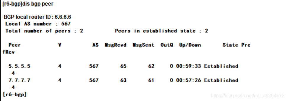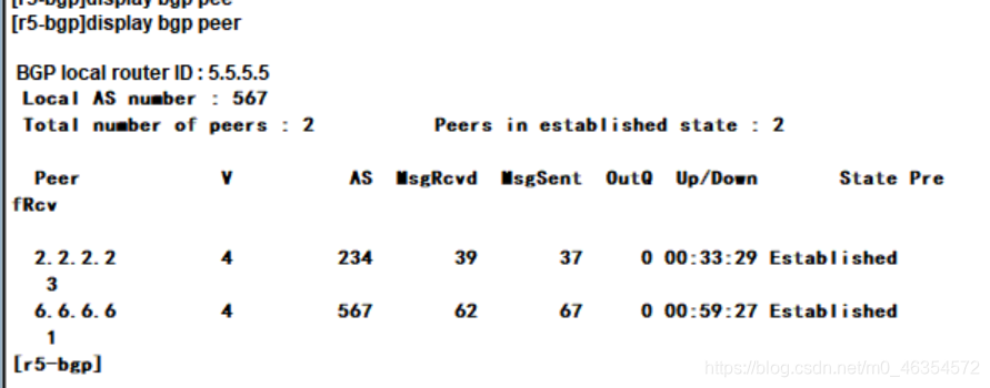 查看bgp邻居关系: