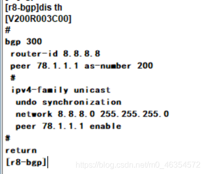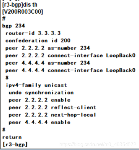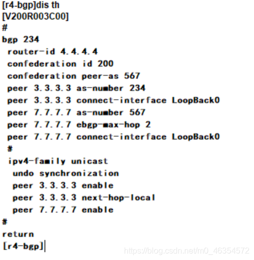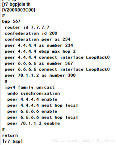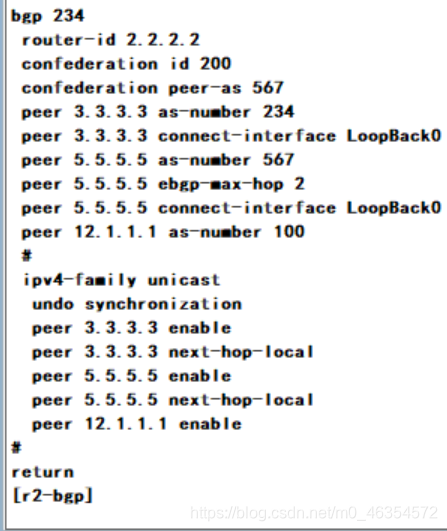 2.R1属于AS 100 ; R2-R3-R4小AS 234 R5-R6-R7小AS 567,同时声明大AS 200,R8属于AS300;R2-R5 R4-R7之间为联邦EBGP邻居关系