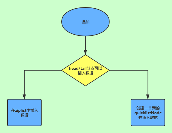 quicklist可以选择在头部或者尾部进行插入( quicklistPushHead和quicklistrushTail ),而不管是在头部还是尾部插入数据,都包含两种情况: