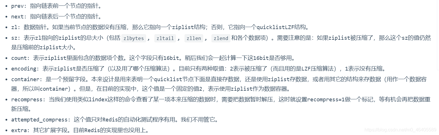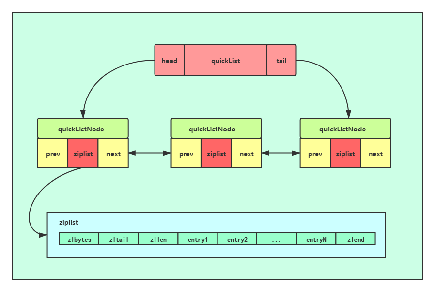 Redis3.2之后,列表对象的底层数据结构(quicklist)为: