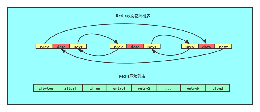 Redis3.2之前: 列表对象的底层数据结构(linkedlist 与 ziplist)为: