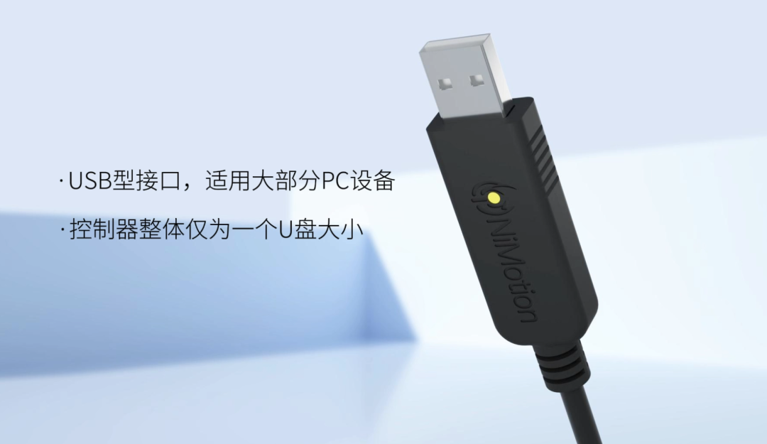 为了解决以上问题,我们研发了一种NIMC301-A微型运动控制器,可以做到开箱即用,极大地增加了用户的易用性。其自带CANopen主站,具备PLC控制功能,也可为Windows平台提供实时性拓展,而体积仅相当于“U盘”大小!
