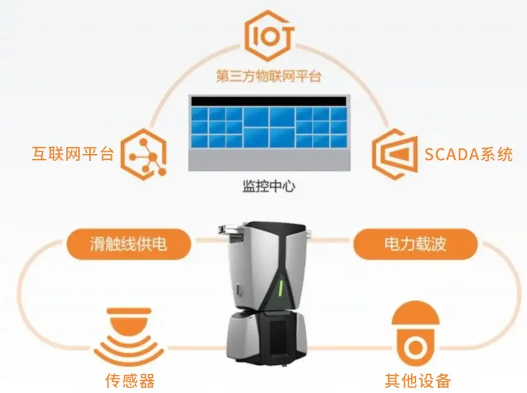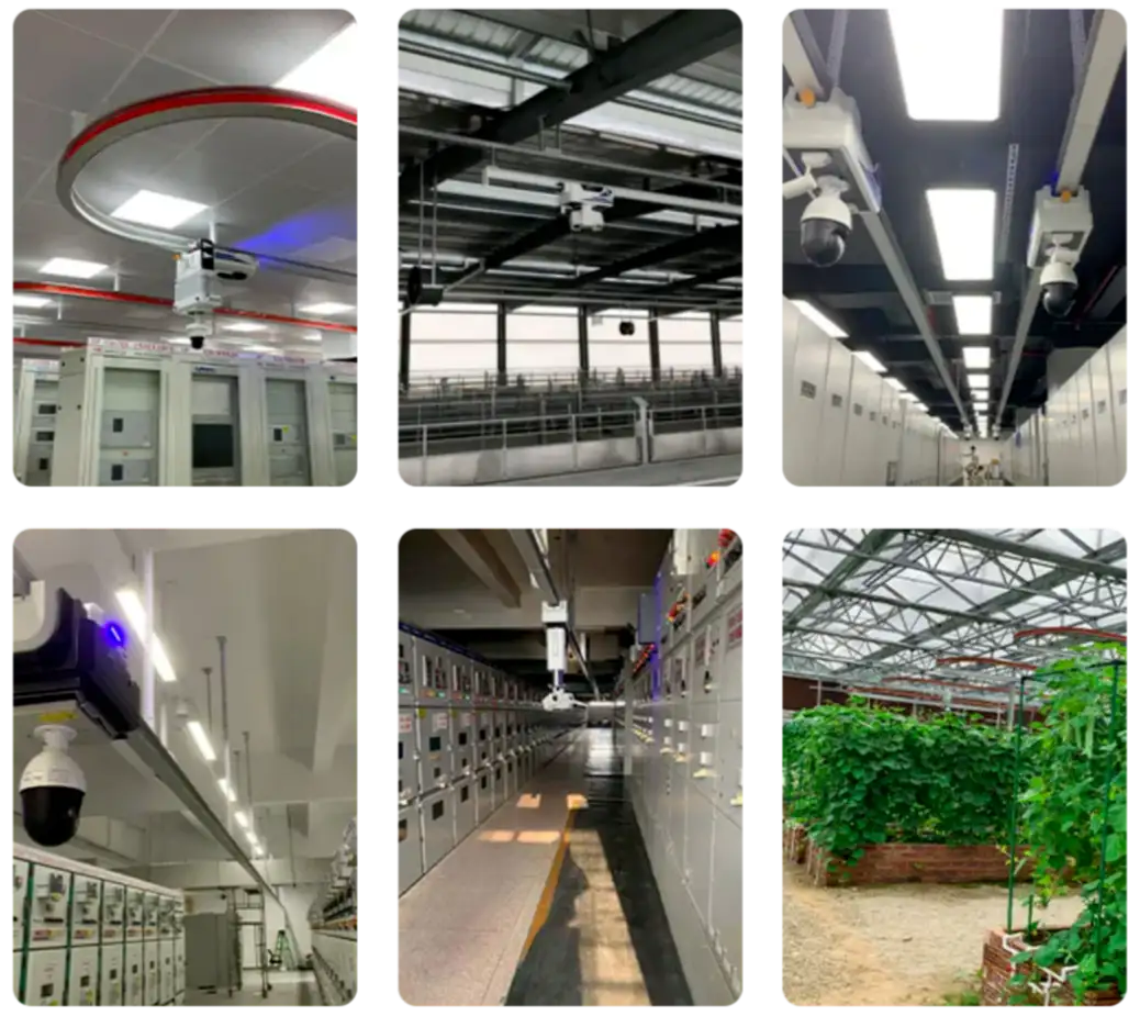 吊挂式智能巡检机器人的应用非常广泛,包括电力输电线路、化工厂、地下管廊等环境复杂、风险较高的区域。在这些场景中,其能够有效提高巡检效率,降低人工成本,确保设施的安全稳定运行。