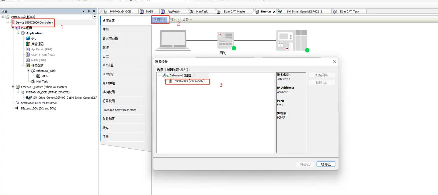 (1)打开codesys软件,连上plc控制器。