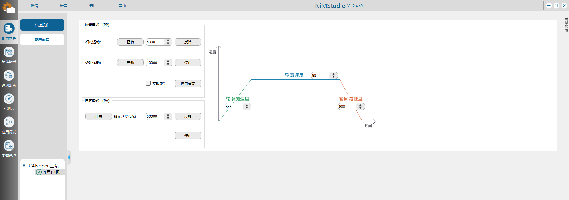 (1)打开NiMStudio,连上我司的伺服电机,注意示例电机使用的是CANopen通信的伺服电机,其它电机同样操作方法。