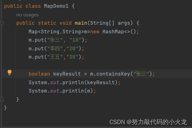 boolean containsKey(object key) 判断集合是否包含指定的键