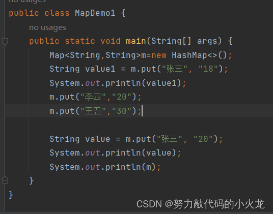 在添加数据的时候,如果键不存在,那么直接把键值对对象添加到map集合当中,方法返回null