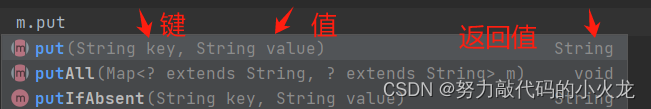 在添加数据的时候,如果键是存在的,那么会把原有的键值对对象覆盖,会把被覆盖的值进行返回。