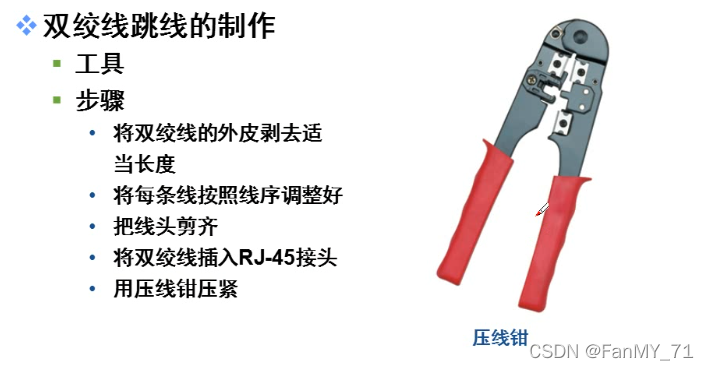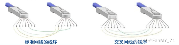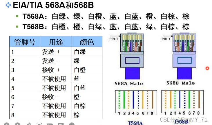 线序:线的排列顺序,有八根双绞线,推荐使用T568B的线序。真正只有4根线在使用。🚀[牢记T568B的线序]🚀
