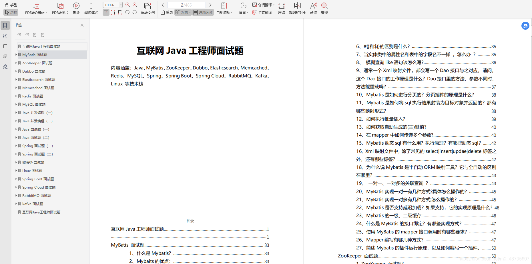 本文分享给需要面试刷题的朋友,也祝愿大家顺利拿到自己想要的offer,Java基础,内容主要包括:MyBatis、ZooKeeper、Dubbo、Elasticsearch、Memcached、Redis、MySQL、Spring、Spring、Boot、Spring Cloud、RabbitMQ、Kafka、Linux 等技术栈。