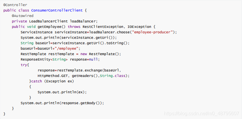 之前的代码,有像NullPointer这样的例外的机会,并不是最优的。我们将看到如何使用Netflix Feign使呼叫变得更加轻松和清洁。如果Netflix Ribbon依赖关系也在类路径中,那么Feign默认也会负责负载平衡。