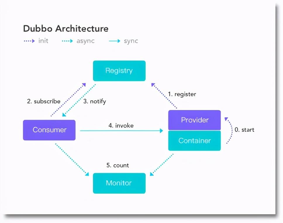 - 监控中心(Monitor):服务消费者和提供者,在内存中累计调用次数和调用时间,定时每分钟发送一次统计数据到监控中心