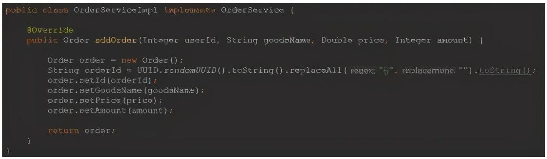 E、新建接口的实现类:OrderServiceImpl
