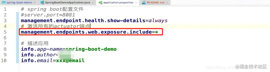 - 激活所有的Acttuator端点,在application.yml中添加: