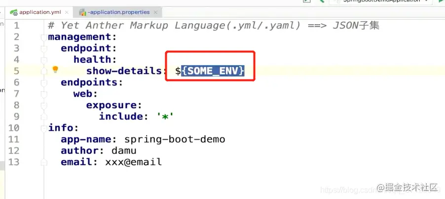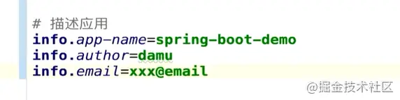 - info:不是用于监控的,我们一般用于描述应用,使用key-value形式去写,如图所示: