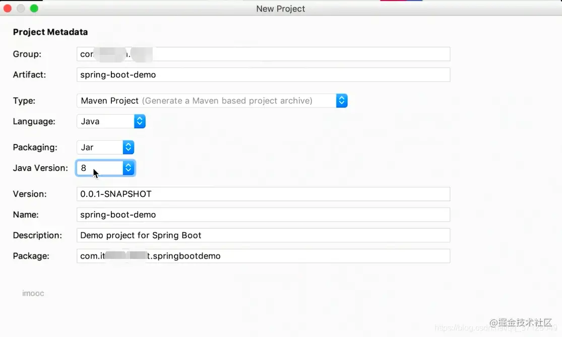 - 根据自己实际配置好Group及Artifact,Type选Maven(若为Gradle项目也可以选Gradle),其他根据实际配置,如图所示: