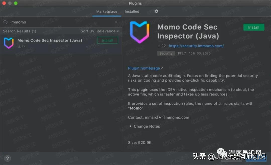 本文介绍了一款名为Momo的IDEA插件,用于在Java项目编码过程中进行静态代码安全审计,发现并修复潜在的安全风险。插件支持IntelliJ IDEA 2017.3及更高版本,提供了包括SQL注入、反序列化风险等在内的多种安全检查规则,并具备一键修复功能。安装方式简单,可以通过IDEA插件市场搜索安装。