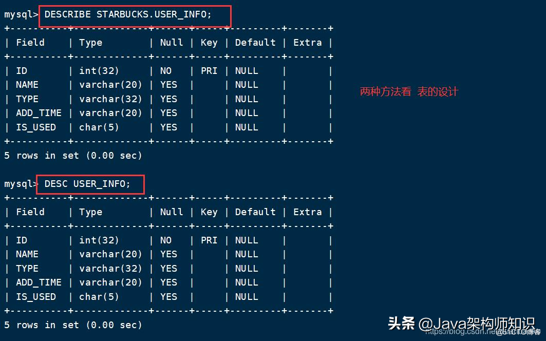 #先创建 STARBUCKS 数据库,再创建 USER_INFO 表,添加一些字段