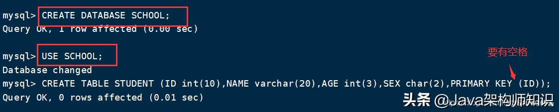 CREATE TABLE STUDENT (ID int(10) NOT NULL,NAME varchar(20),AGE int(3),SEX char(2),PRIMARY KEY (ID));
