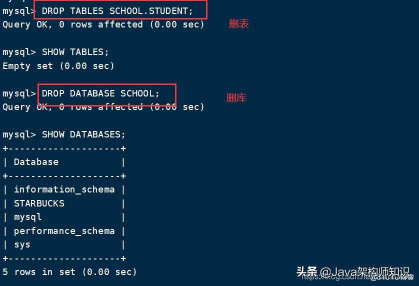 DROP DATABASE 数据库名; #会连库中的表一起删除