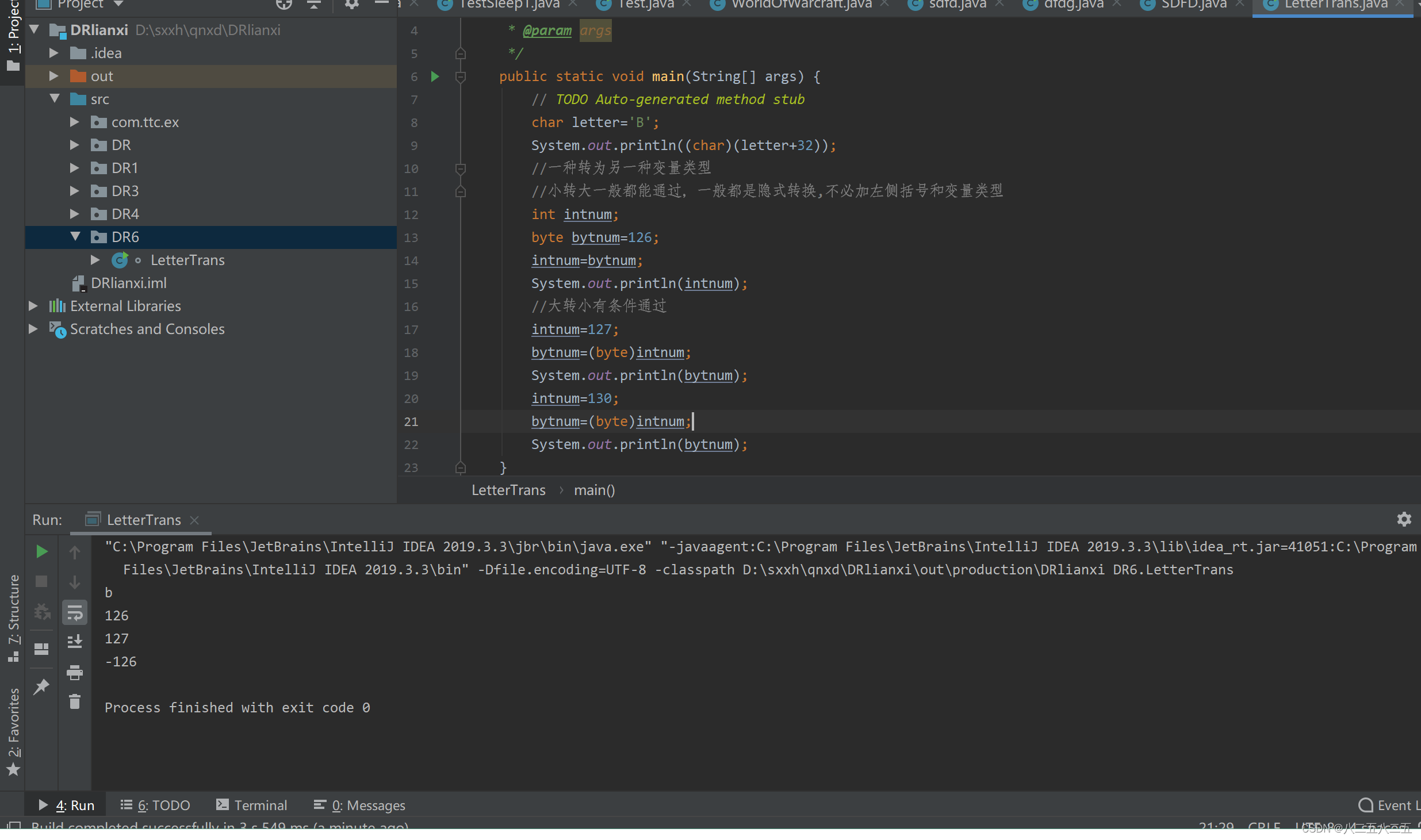 "C:\Program Files\JetBrains\IntelliJ IDEA 2019.3.3\jbr\bin\java.exe" "-javaagent:C:\Program Files\JetBrains\IntelliJ IDEA 2019.3.3\lib\idea_rt.jar=41051:C:\Program Files\JetBrains\IntelliJ IDEA 2019.3.3\bin" -Dfile.encoding=UTF-8 -classpath D:\sxxh\qnxd\DRlianxi\out\production\DRlianxi DR6.LetterTrans