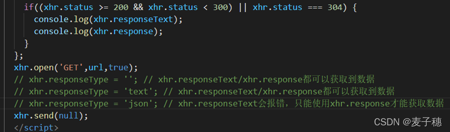 当responseType没有设置或者’’或 ’text’时使用ResponseText/response都可以获取文本形式的响应内容;