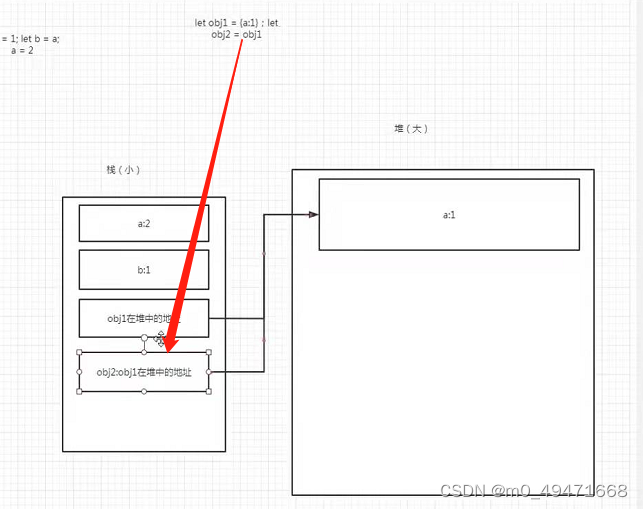 2.obj2指向的也是obj1在堆中的地址,和obj1指向的是一个堆