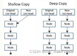 浅拷贝:只复制指向某个对象的指针,而不复制对象本身,新旧对象还是共享同一块内存