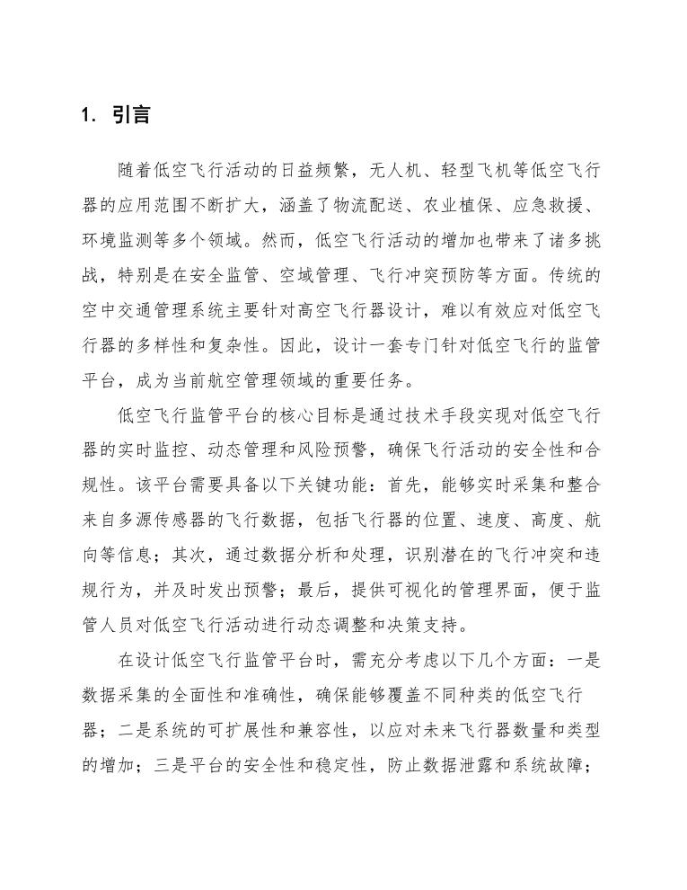 总之,低空飞行监管平台的设计与实施,不仅是技术创新的体现,更是国家空域管理现代化的重要标志。通过该平台的建设,将为低空经济的高质量发展提供有力保障,同时为全球低空飞行监管体系的建设提供中国方案。