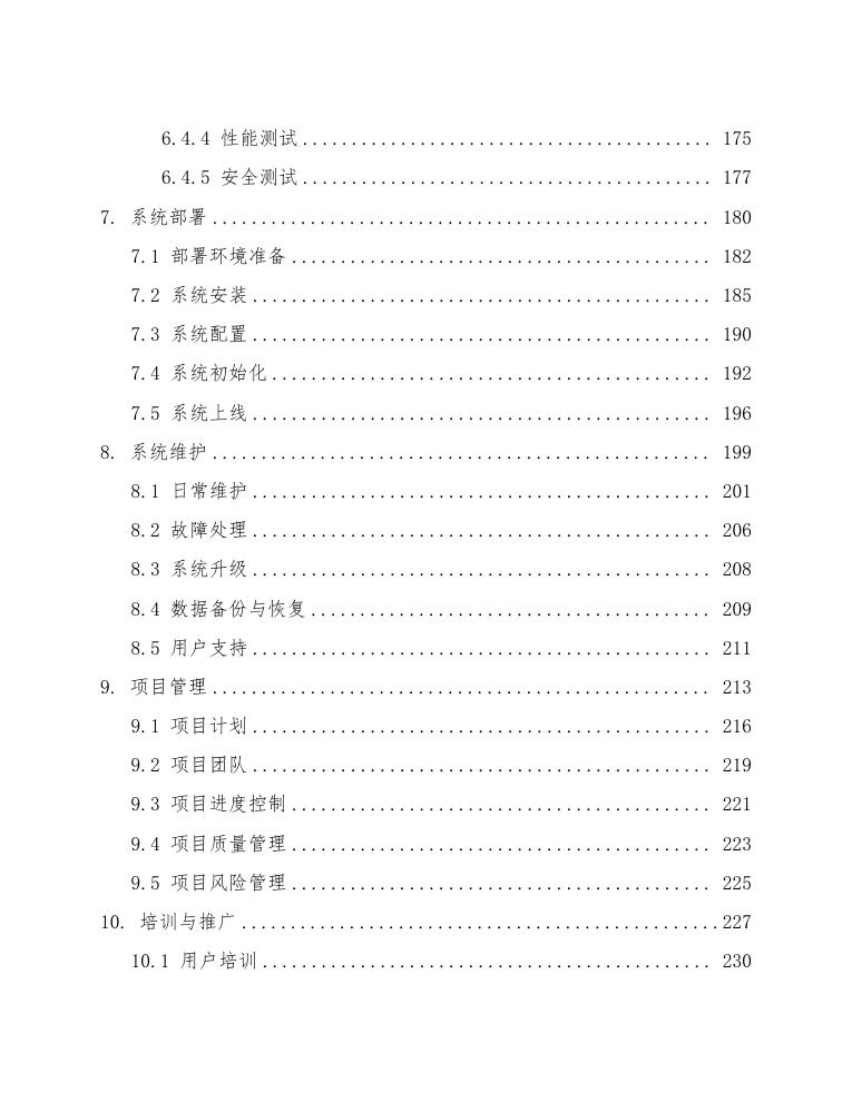 最后,系统将具备良好的可扩展性和可维护性。通过采用模块化设计和微服务架构,确保系统能够灵活应对未来业务需求的变化和技术升级。系统将提供完善的运维管理工具,支持自动化部署、监控和故障排查,降低系统运维成本。预计系统上线后,系统可用性将保持在99.9%以上,系统升级周期缩短至每月一次。