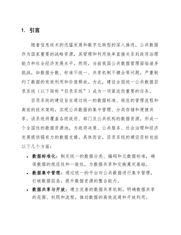 通过以上范围的界定,本项目将构建一个全国统一的公共数据目录系统,为政府决策、公共服务、社会创新等提供强有力的数据支撑。