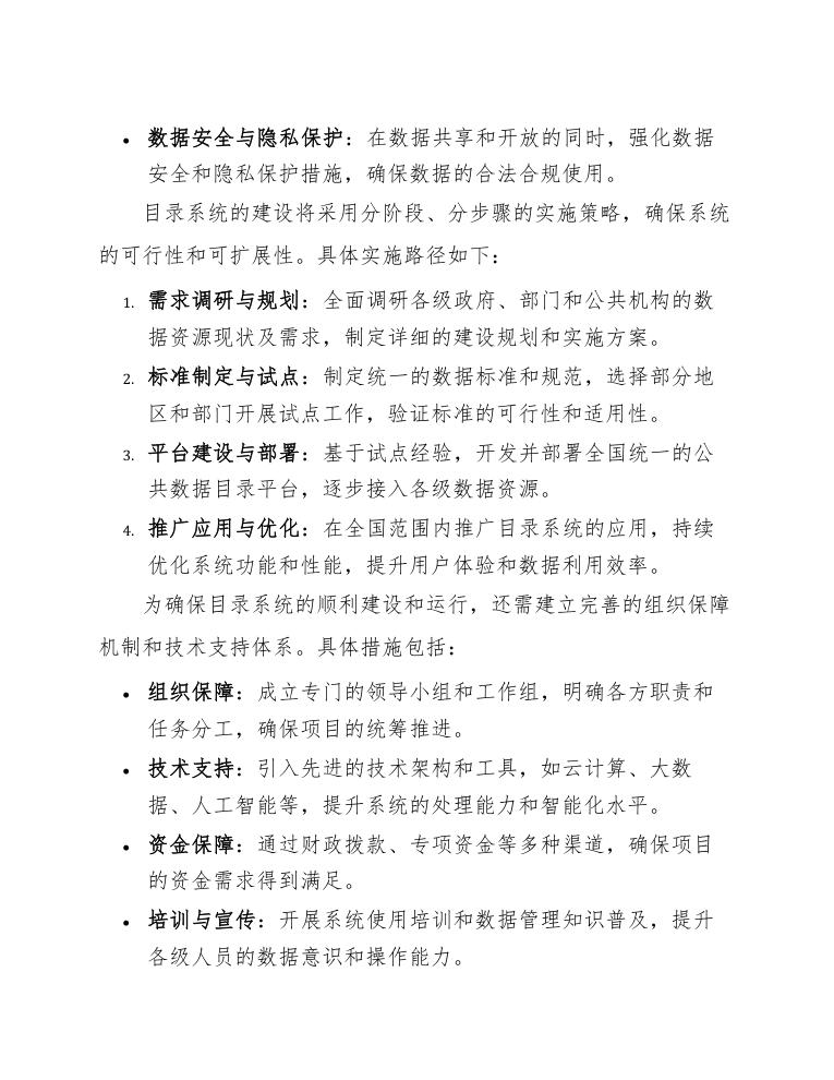 为确保目录系统的顺利建设和运行,还需建立完善的组织保障机制和技术支持体系。具体措施包括: