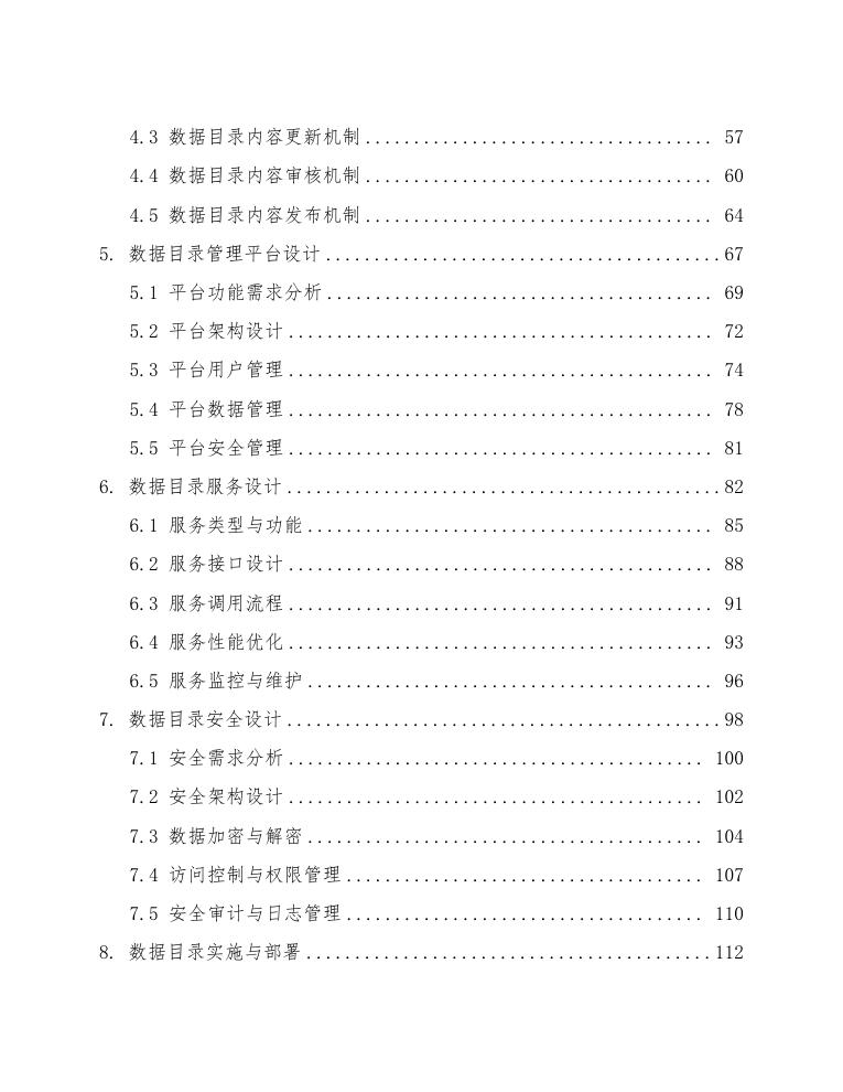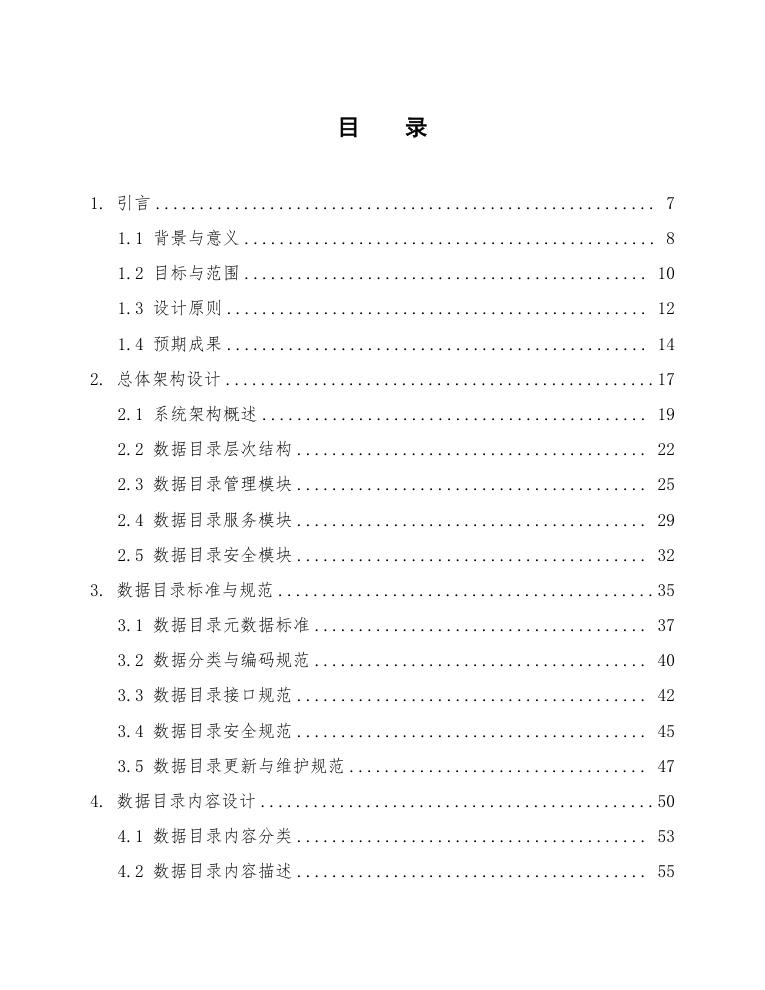 第五,数据目录的设计应强调可持续性和可维护性。数据目录的建设和运营是一个长期过程,需要持续投入资源进行维护和优化。为此,应建立完善的运维管理体系,包括数据更新机制、用户反馈机制和技术支持体系,确保数据目录能够长期稳定运行。同时,应注重人才培养和技术积累,为数据目录的可持续发展提供保障。