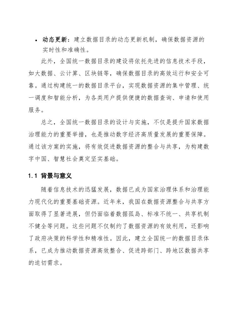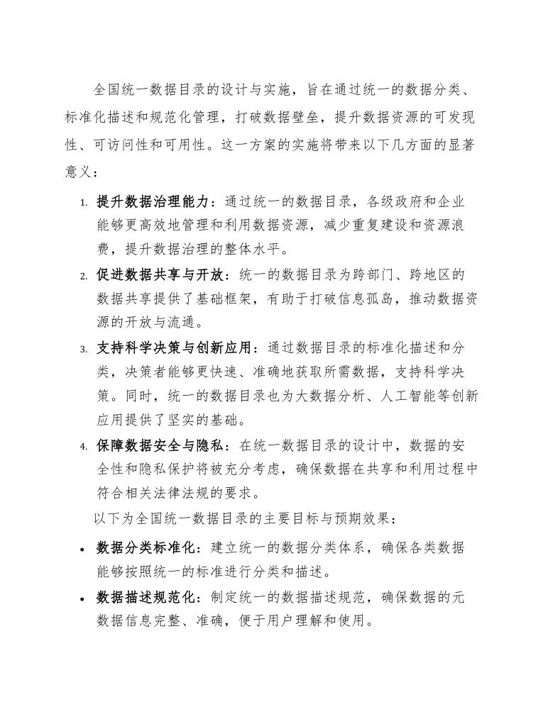 总之,全国统一数据目录的设计与实施,不仅是提升国家数据治理能力的重要举措,也是推动数字经济高质量发展的重要保障。通过该方案的实施,将有效促进数据资源的整合与共享,为构建数字中国、智慧社会奠定坚实基础。