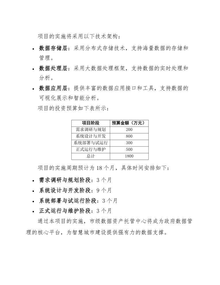 通过本项目的实施,市级数据资产托管中心将成为政府数据管理的核心平台,为智慧城市建设提供强有力的数据支撑。