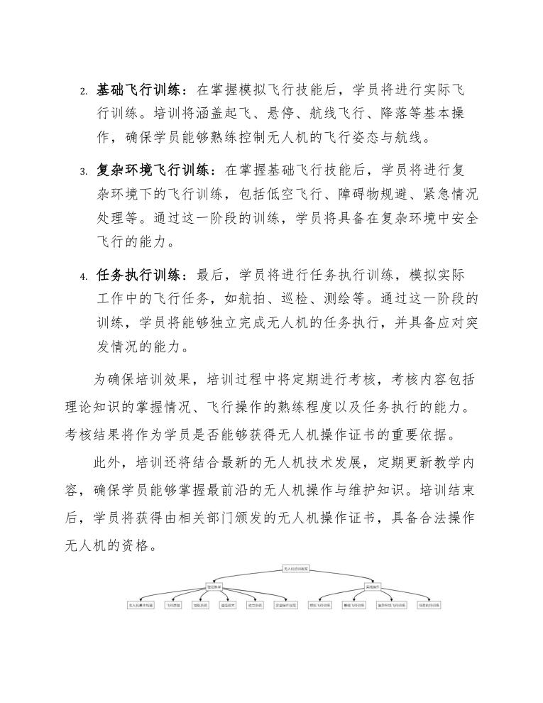为确保培训效果,培训过程中将定期进行考核,考核内容包括理论知识的掌握情况、飞行操作的熟练程度以及任务执行的能力。考核结果将作为学员是否能够获得无人机操作证书的重要依据。