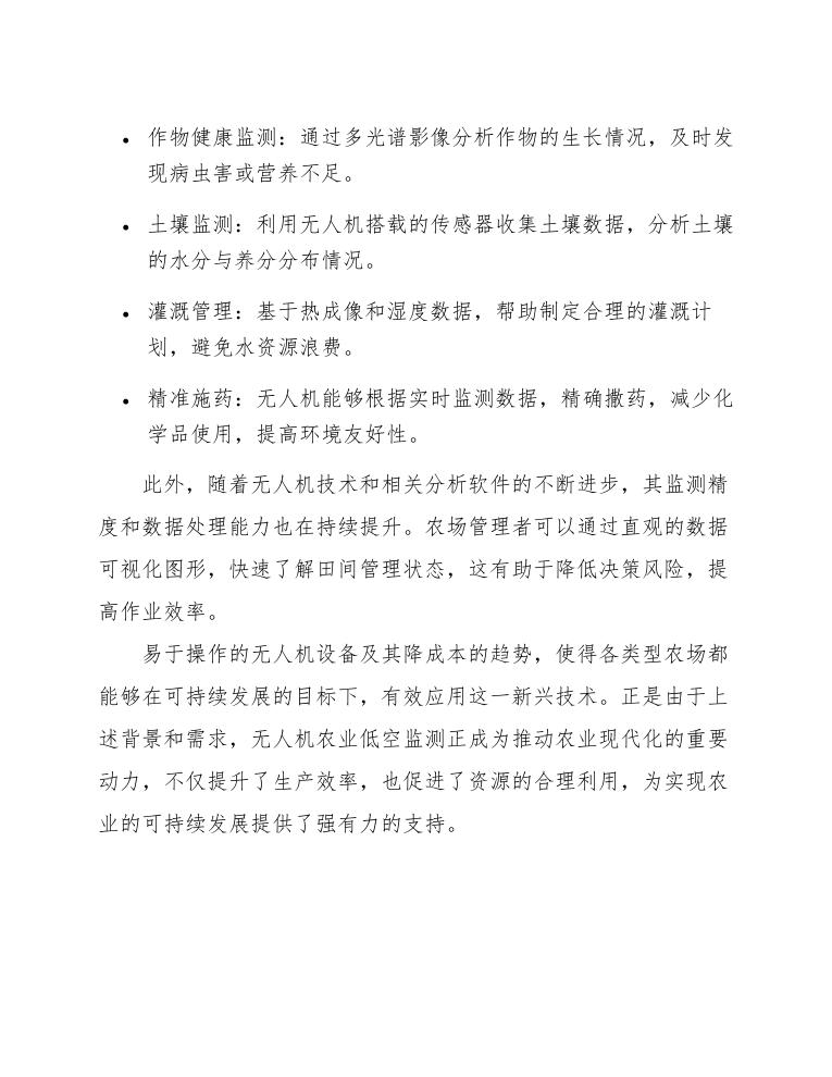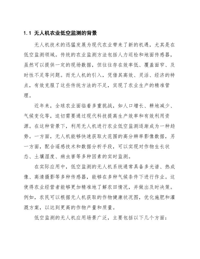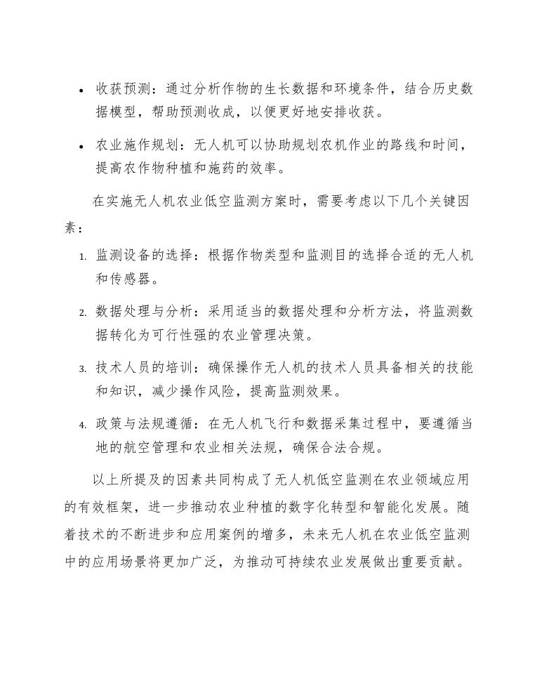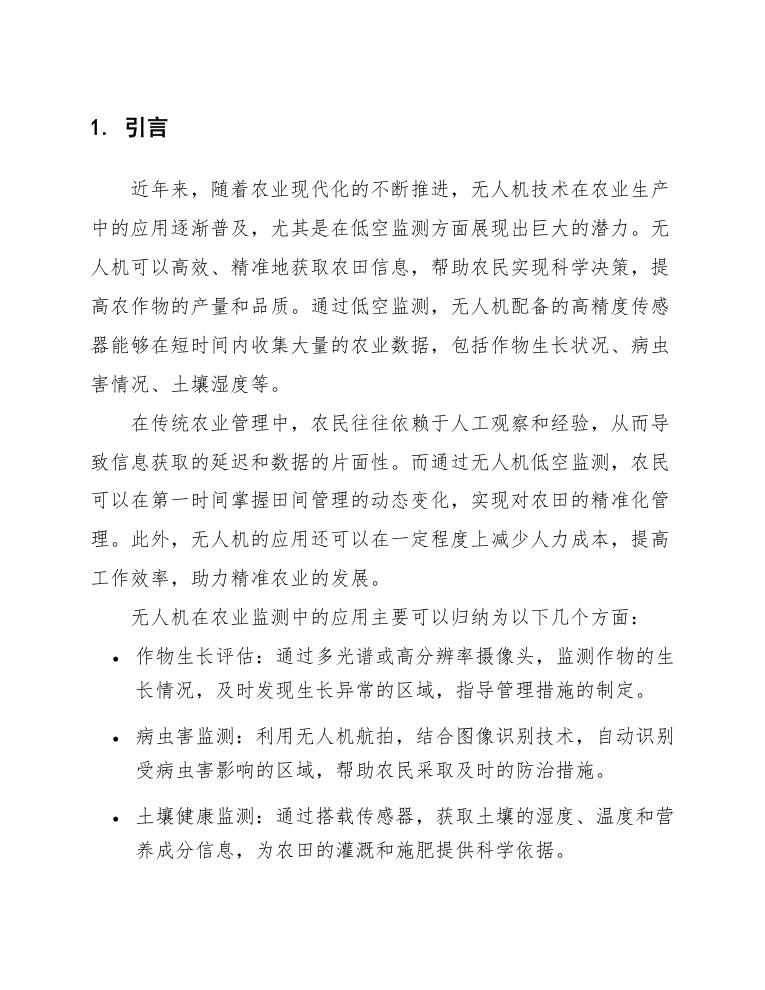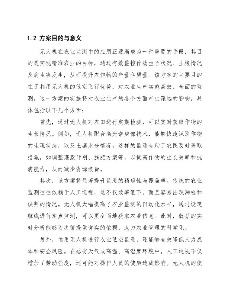 通过以上分析,我们可以看到,基于无人机的农业低空监测方案不仅具备实用性和可行性,还对推动农业现代化、实现可持续发展目标具有积极的促进作用。有效实施此方案,将在未来农业发展中起到关键作用。