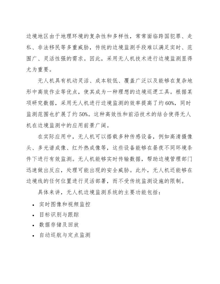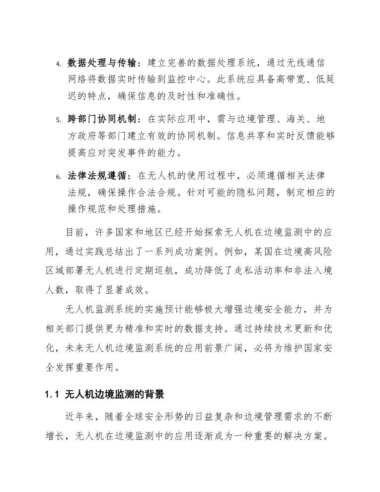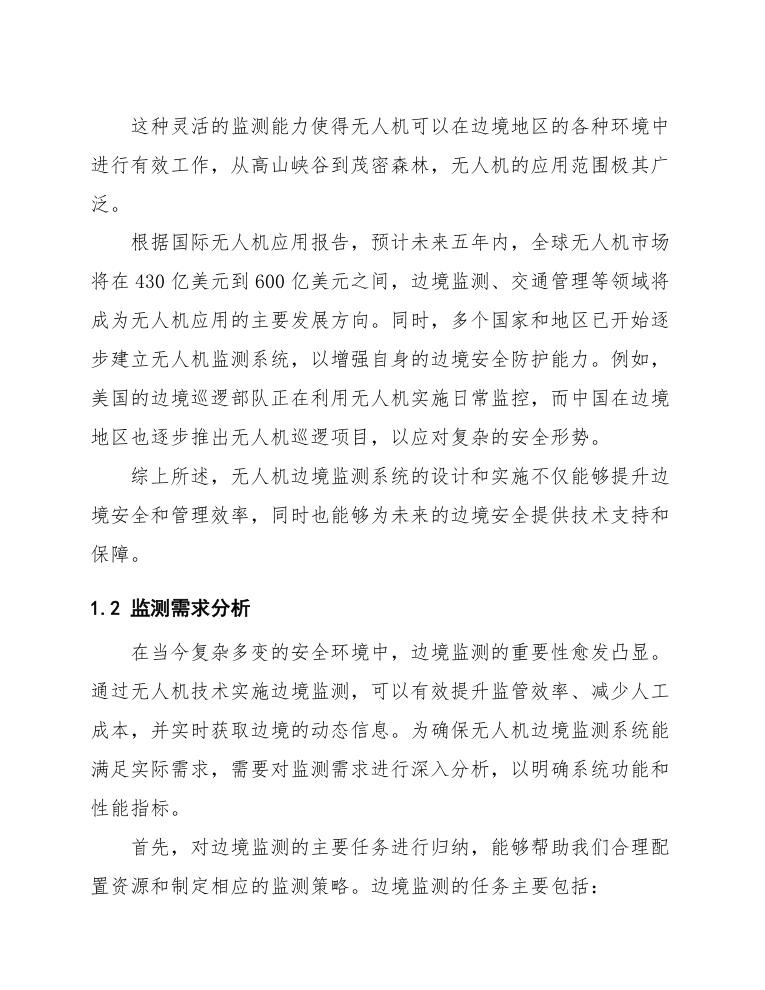 综上所述,无人机边境监测系统的设计和实施不仅能够提升边境安全和管理效率,同时也能够为未来的边境安全提供技术支持和保障。