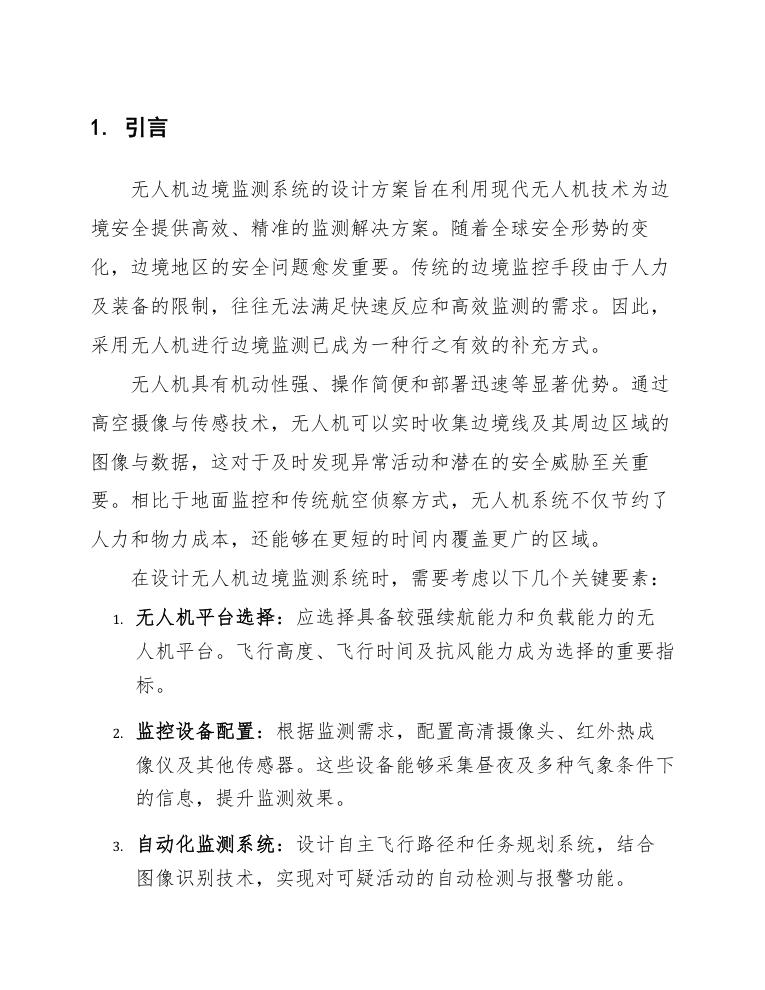 通过以上设计,系统将建立一套有效的无人机边境监测体系,不仅能有效保障边境安全,还能提高监测的反应速度和效率。在技术不断发展及应用的过程中,该系统还可以根据实际情况进行升级与扩展,确保能够适应未来的更多需求。