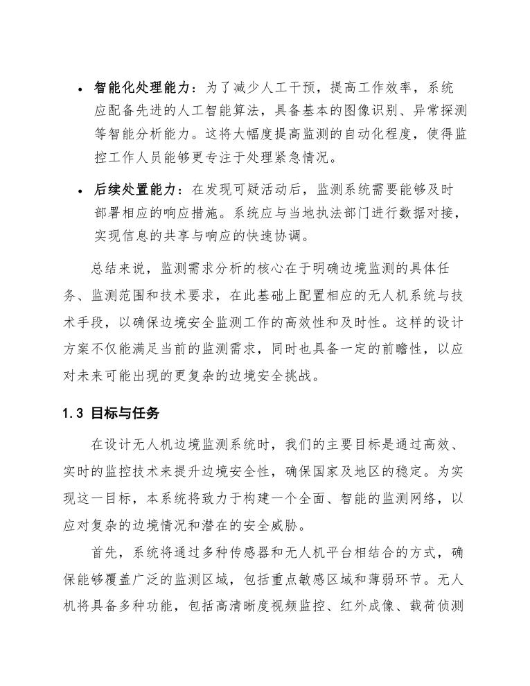 通过以上目标与任务的实现,我们期望无人机边境监测系统能够大幅提升边境的安全监控能力,形成对各类不法行为的有效 deterrence,最终达到维护国家安全的目的。