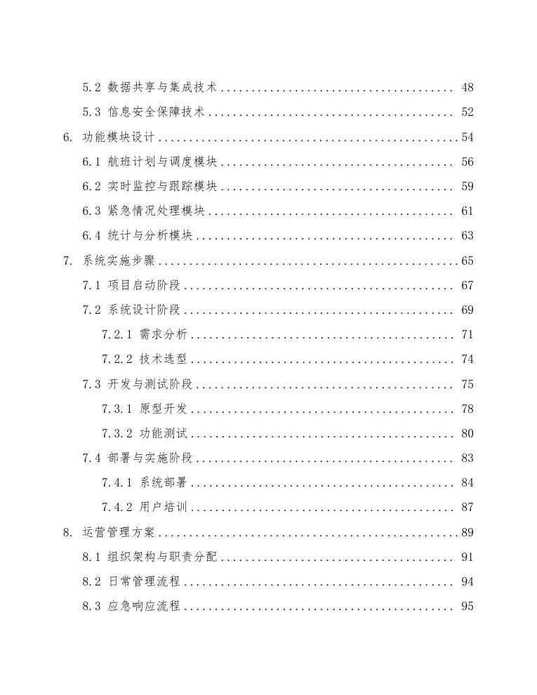 综上所述,本方案的主要内容概述旨在通过全面的系统建设规划,强化空中交通管制的现代化和智能化,提升航空运输的安全性与效率,满足未来航空发展的多样化需求。