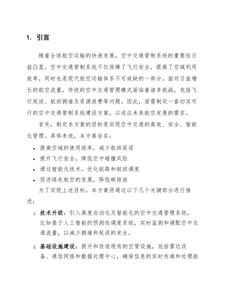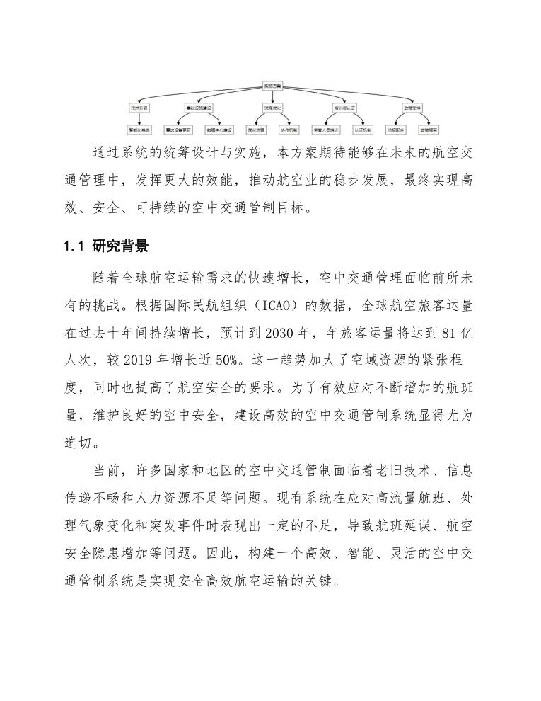首先,制定本方案的目标是实现空中交通的高效、安全、智能化管理。具体来说,本方案旨在: