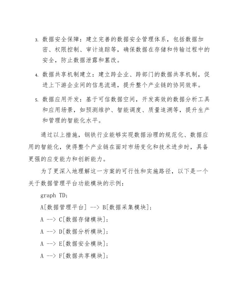 通过以上措施,钢铁行业能够实现数据治理的规范化、数据应用的智能化,使得整个产业链在面对市场变化和技术进步时,具备更强的应变能力和创新能力。