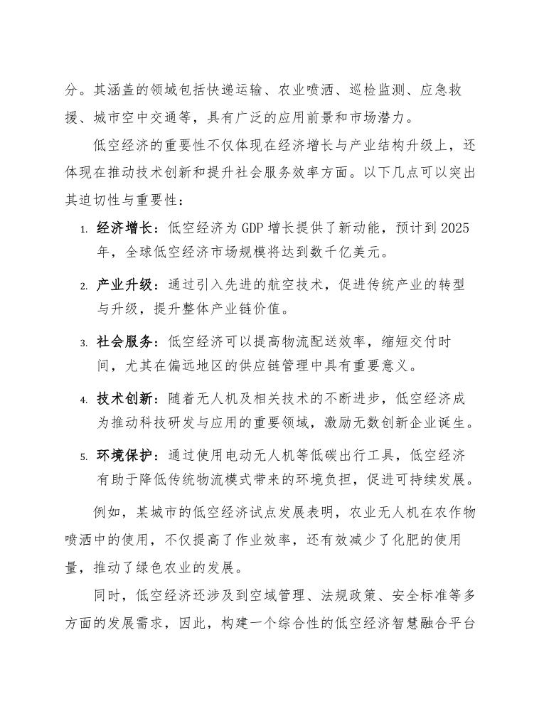 低空经济的重要性不仅体现在经济增长与产业结构升级上,还体现在推动技术创新和提升社会服务效率方面。以下几点可以突出其迫切性与重要性: