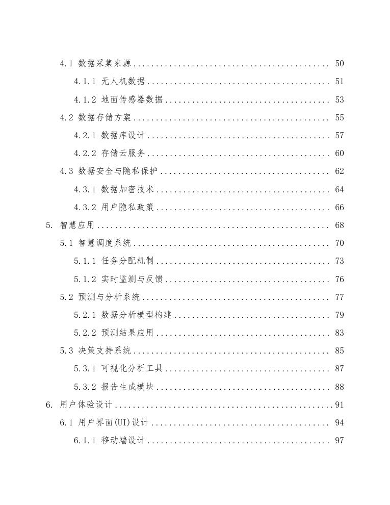 在农田巡查方面,智慧应用可以通过装配农业无人机,进行作物生长监测、病虫害检测和土壤状况分析,推动精准农业发展。数据采集后,系统可以通过AI算法对植物健康状态进行评估,并提出相应的农业管理建议。这样不仅能够提高作物产量,还能减少农药和化肥的使用,实现可持续发展。