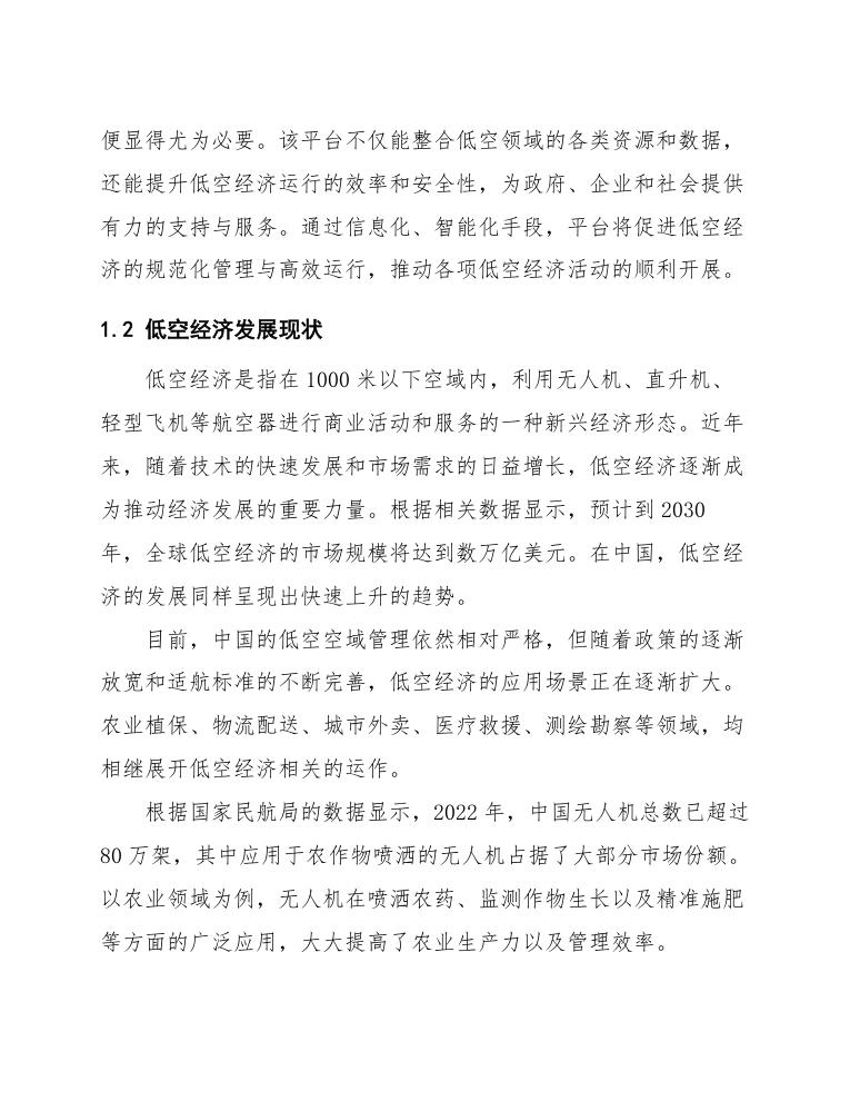 数据接口与交互设计:保证平台能够与现有的低空飞行器控制系统、监测传感器等硬件进行无缝连接,确保数据采集的稳定性和准确性。