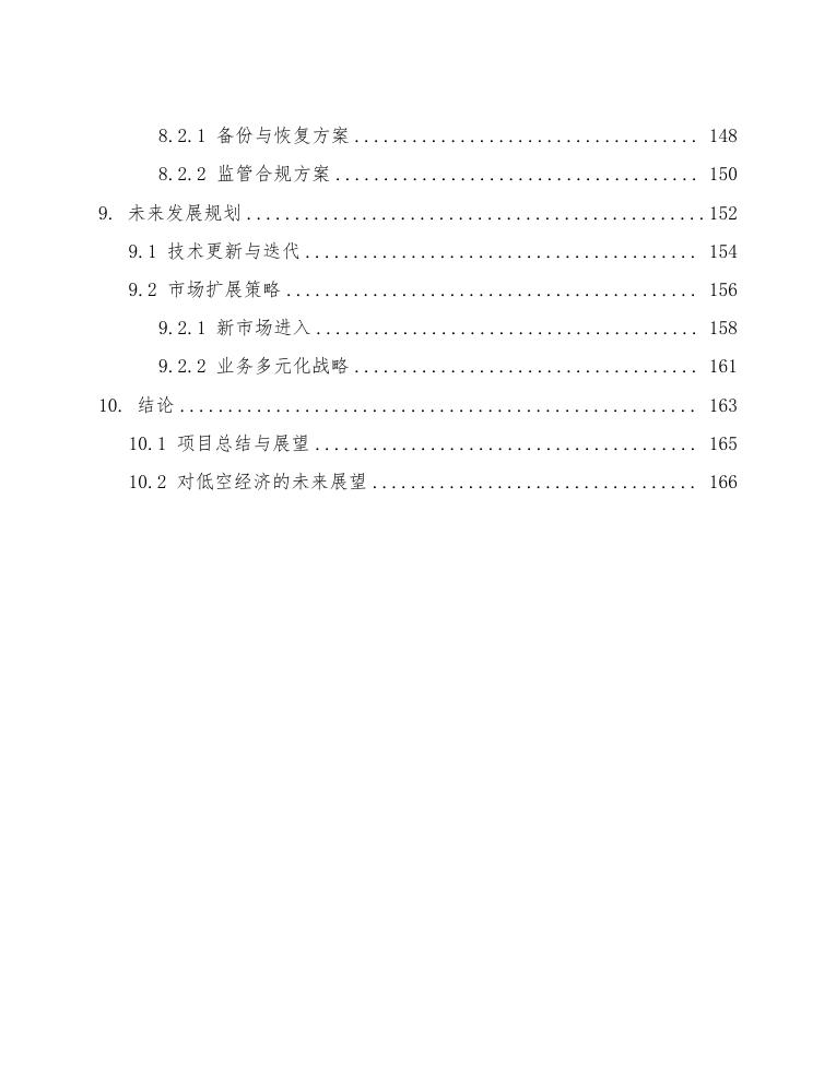 - 技术创新:需要加大对低空飞行器智能化、高效能设计的研发投入,提升产品竞争力