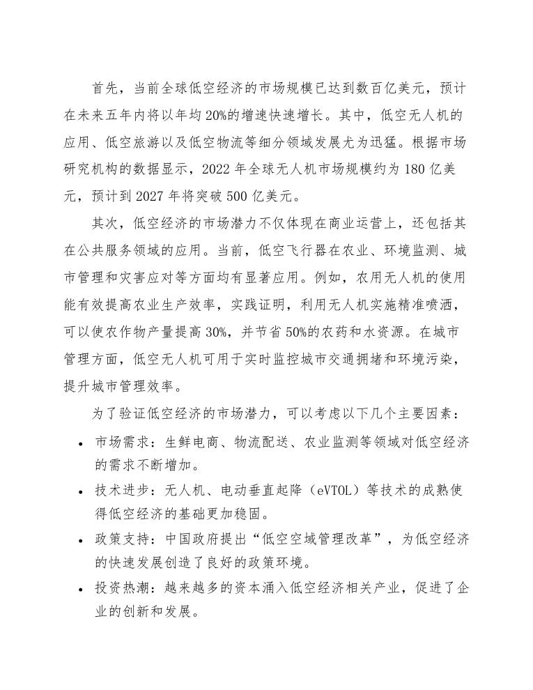为了验证低空经济的市场潜力,可以考虑以下几个主要因素: