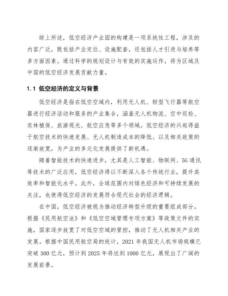 综上所述,低空经济产业园的构建是一项系统性工程,涉及的内容广泛,既包括产业定位、设施配套,还包括人才引进与培养等多方面因素。通过科学的规划设计与有效的实施运作,将为区域及中国的低空经济发展贡献力量。