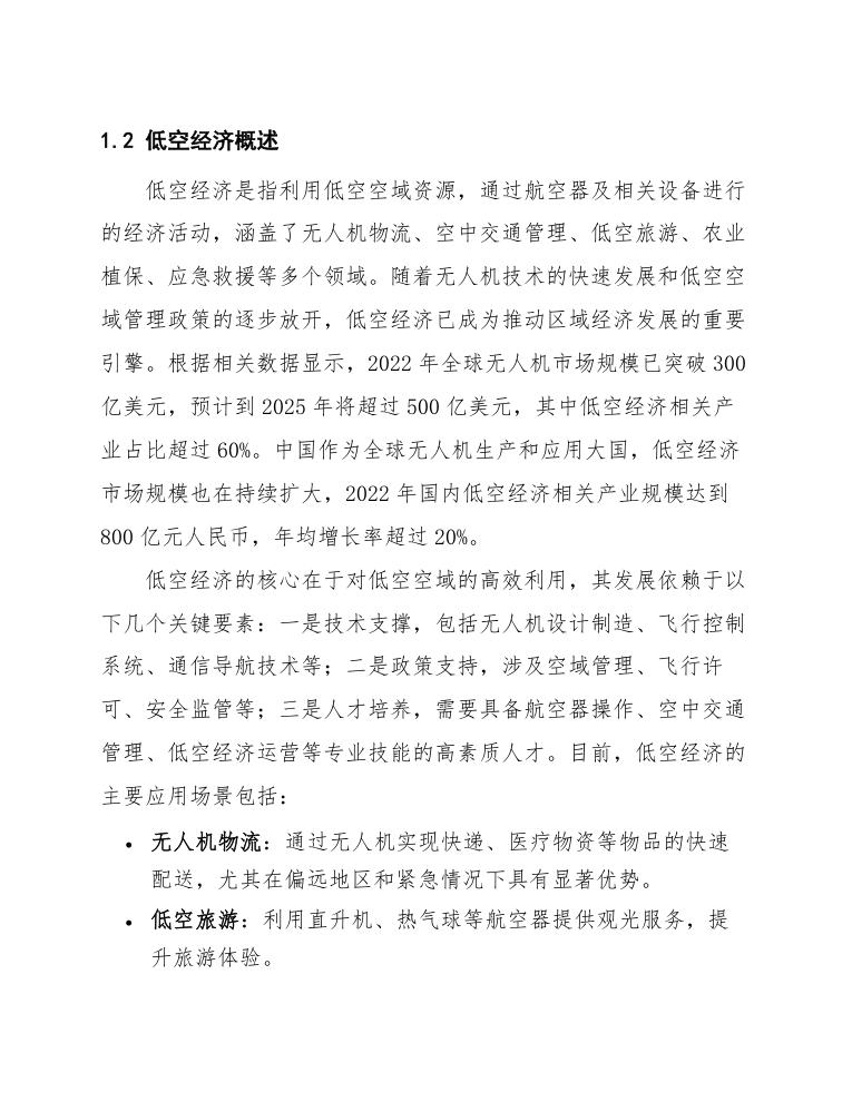 推动低空经济产业发展:通过人才培养和技术创新,推动低空经济产业的快速发展。培养的专业人才应具备较强的创新意识和创业能力,能够为低空经济领域的技术进步和产业升级提供有力支持。